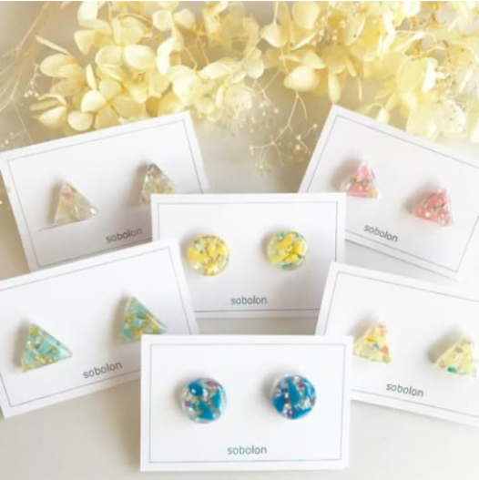 「sobolon」は、海洋汚染の要因であるマイクロプラスチックを回収し、それらを素材としたハンドメイドアクセサリーを製作しているブランドです。